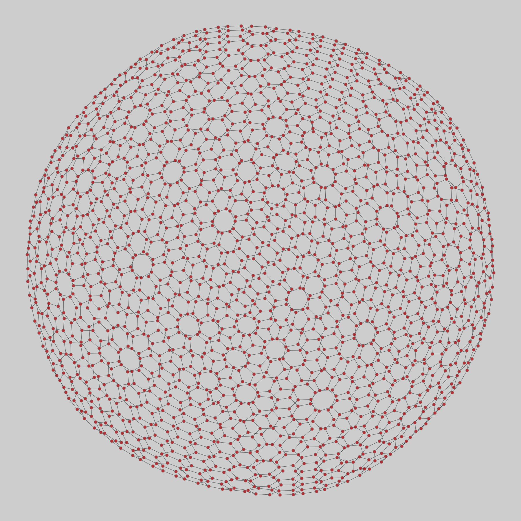 Fifteen networks of carbon atoms and the atomic bonds that connect them within molecules of fullerenes, from 60 atoms up to 6000 atoms. A bond is defined to exist whenever the distance of two atoms is less than 1.5 angstrom.