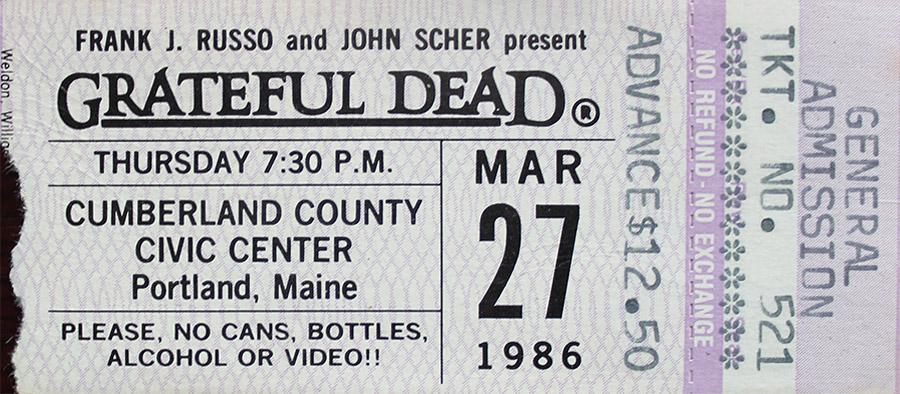 40 years ago tonight, the grateful dead in #maine, their last of 6 visits to the cumberland county civic center in the deadhead stronghold of portland, though garcia returns in ’93. with the only performance of the classic-to-me “revolutionary hamstrung blues” by phil lesh, bobby petersen, & brent mydland, lesh’s only original of the ‘80s. spring ’86, show #7.