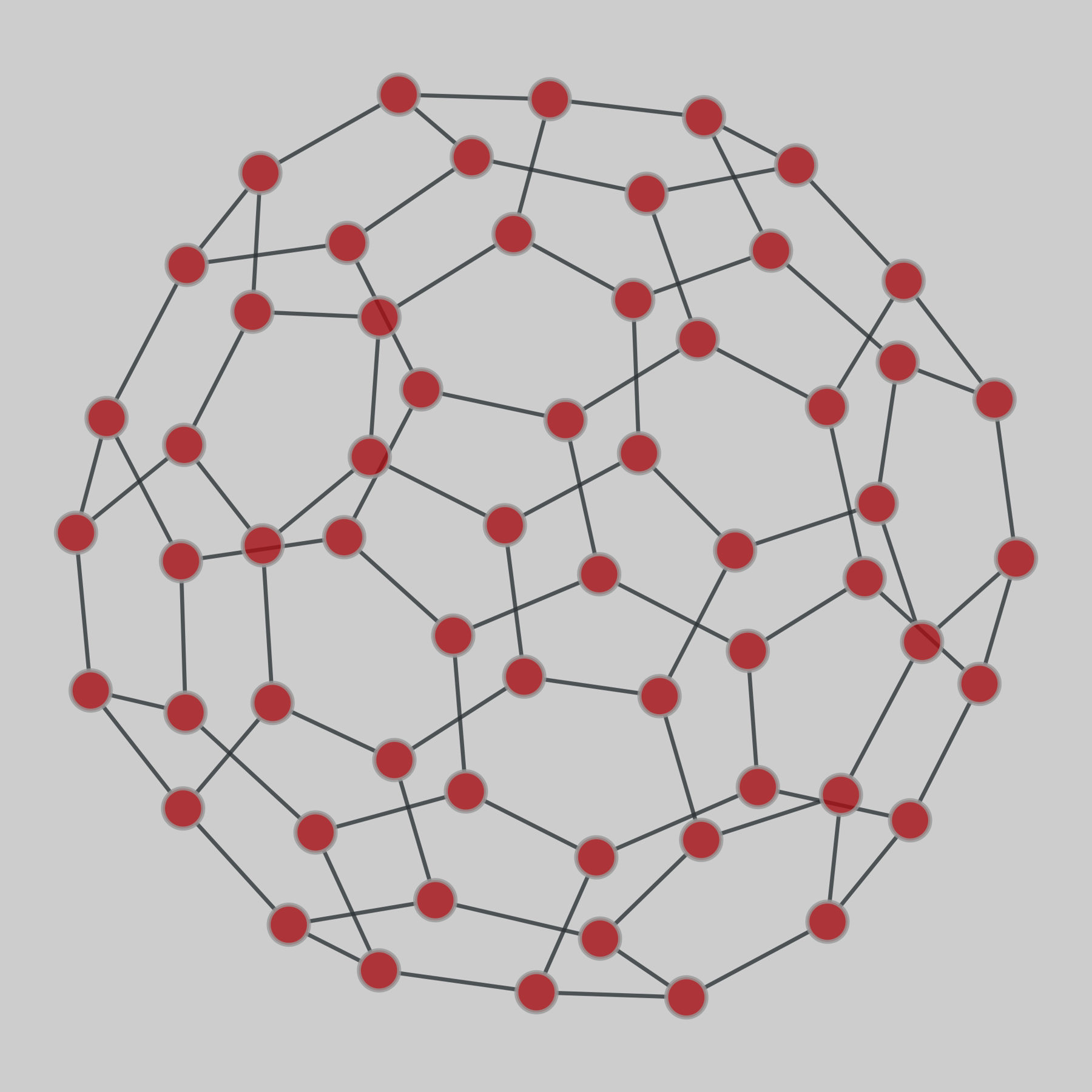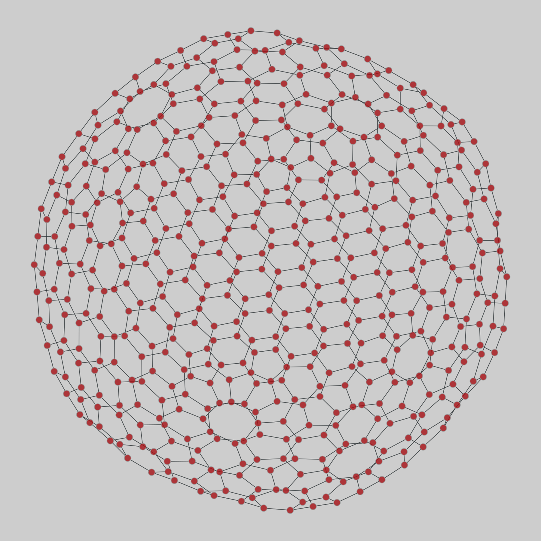 Fifteen networks of carbon atoms and the atomic bonds that connect them within molecules of fullerenes, from 60 atoms up to 6000 atoms. A bond is defined to exist whenever the distance of two atoms is less than 1.5 angstrom.