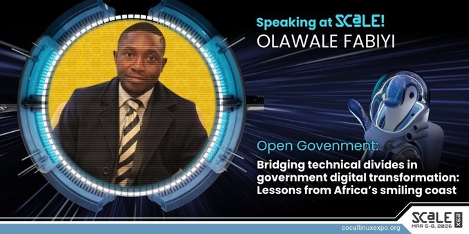 Olawale Fabiyi will speak on 'Bridging technical divides in government digital transformation: Lessons from Africa’s smiling coast' as part of our Open Government track at SCaLE 23x. Full details: https://www.socallinuxexpo.org/scale/23x