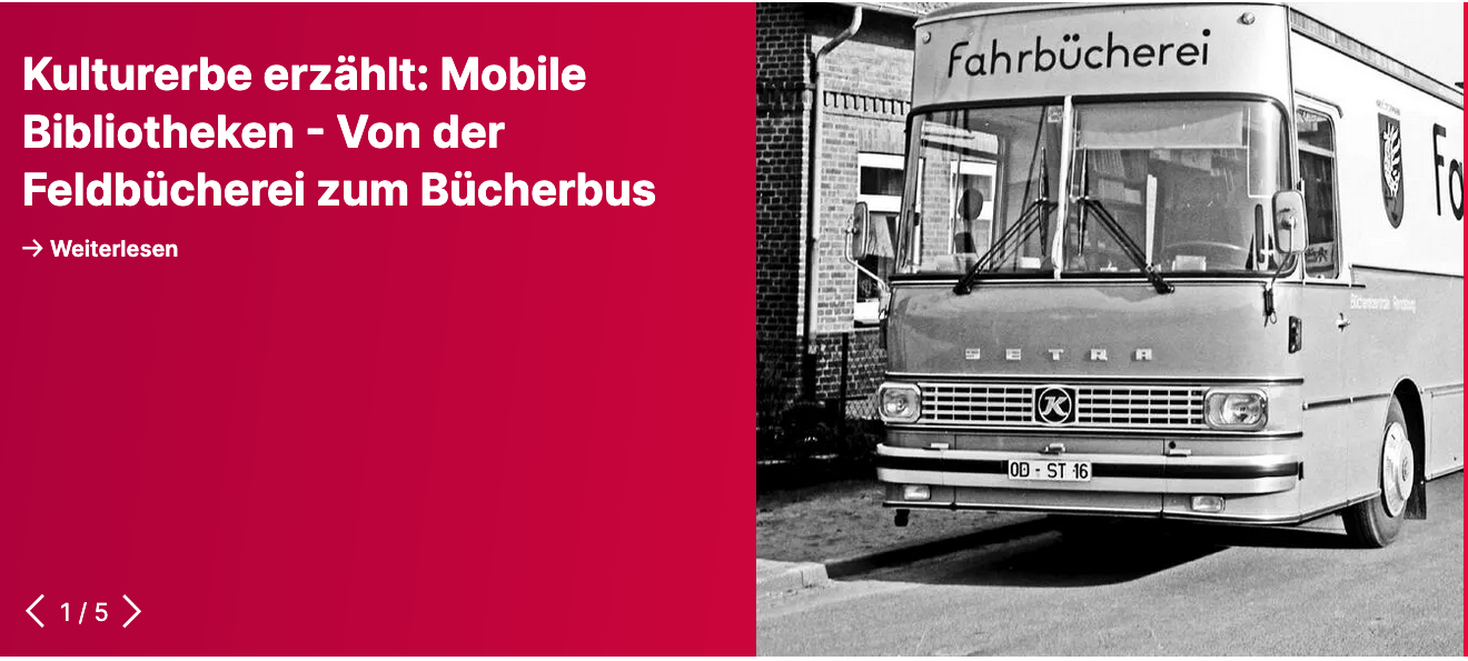 Die @… featuret heute einen schönen Blogbeitrag (aus dem Jahr 2017) über Fahrbibliotheken, vielleicht also für die #bibliothek|sbubble hier interessant. Es geht um Bücherbusse, Feldbüchereien ("Bildungskanonen" bzw. "Schützengräben-Büchereie…