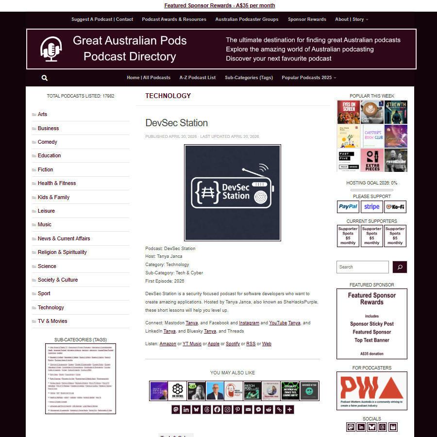 Great Australian Pods Podcast Directory: https://www.greataustralianpods.com/devsec-station/