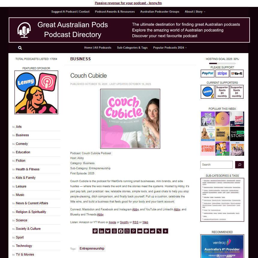 Great Australian Pods Podcast Directory: https://www.greataustralianpods.com/couch-cubicle/