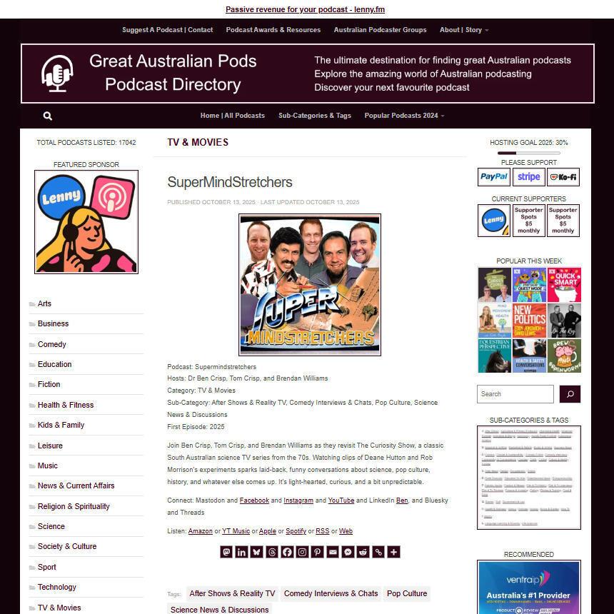 Great Australian Pods Podcast Directory: https://www.greataustralianpods.com/supermindstretchers/