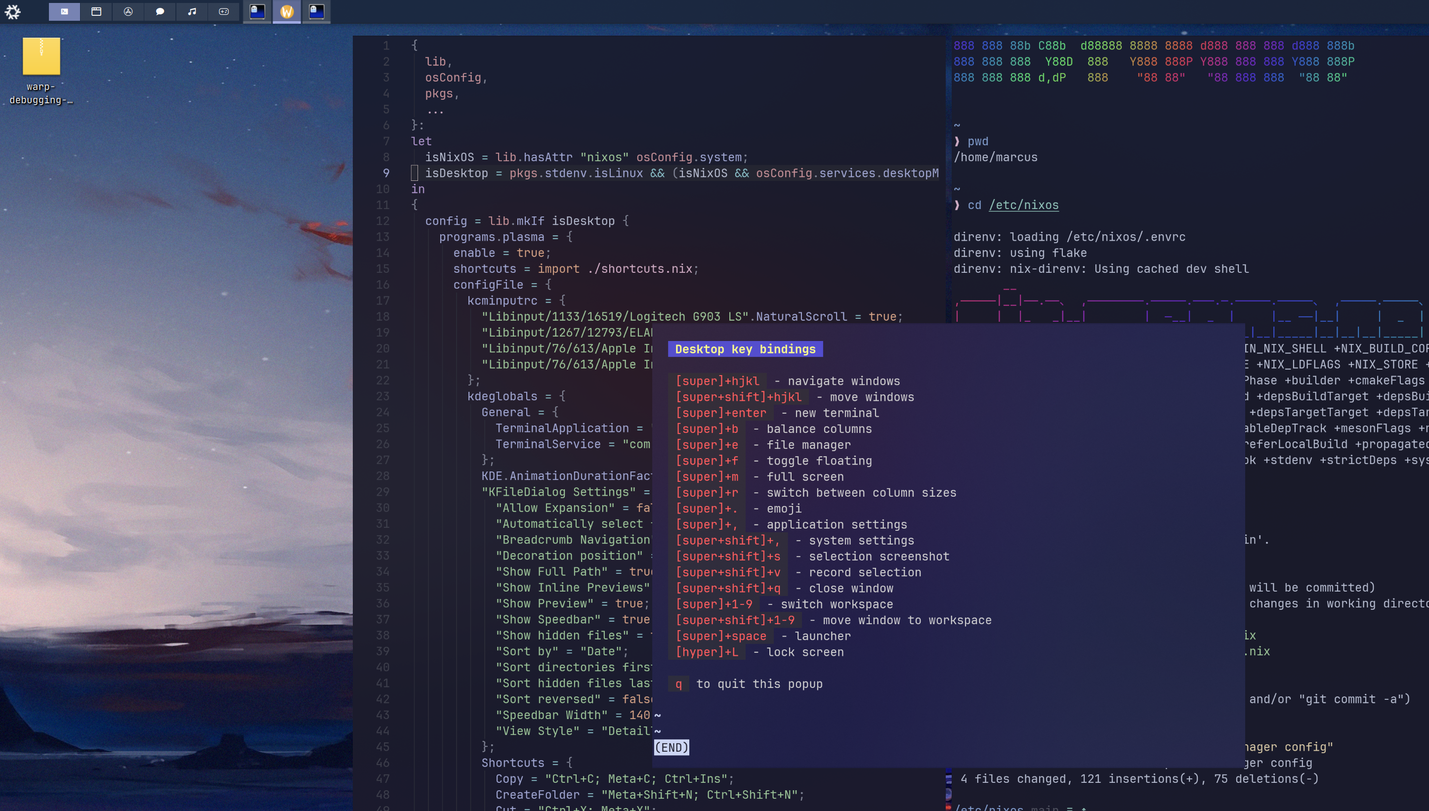 I might have spent a little too much time last night on making my #kde plasma config declarative with #nix plasma-manager - pretty happy with the emoji desktop icons and the cheat sheet tho
