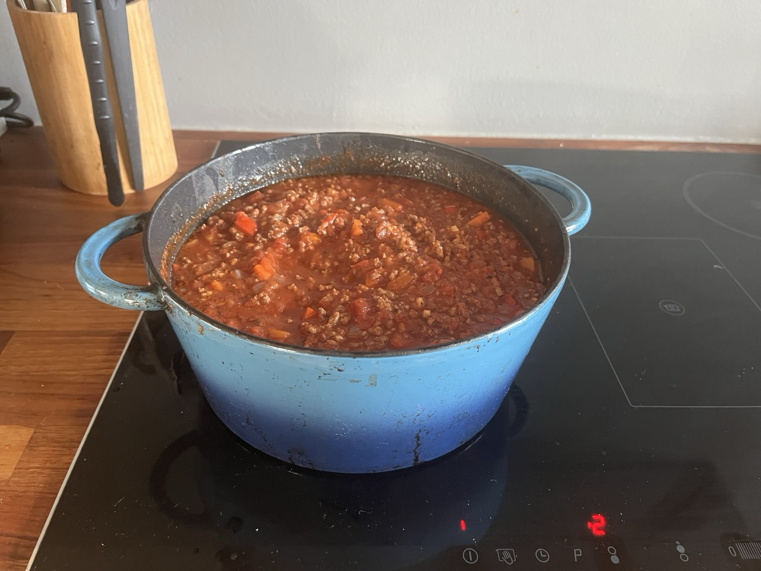 Klokken kvart over syv i morges gik jeg er supermarkedet og kŸbte ind til en stor gryde kŸdsovs. Det er til ÆldsteSŸn som for nogle uger siden rapporterede at han knokler på studiet og som undervisningsassistent og lægger over 60 timer om ugen i det. Vi har allerede været god ham med et læs nedfrosne madretter, og dette bliver så det andet. Og han er glad og lettet 😇