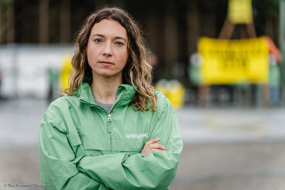 Ihr Kleid mit der Aufschrift tax the rich save the climate lenkt den Blick…