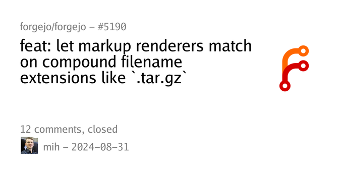 Hooray @…, @… cherry-picked your @… patch to configure custom file renderers for compound extensions like .tar.gz! 🥳