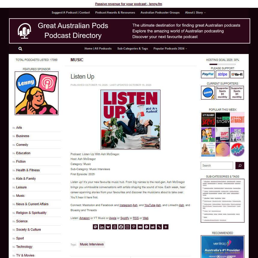 Great Australian Pods Podcast Directory: https://www.greataustralianpods.com/listen-up/