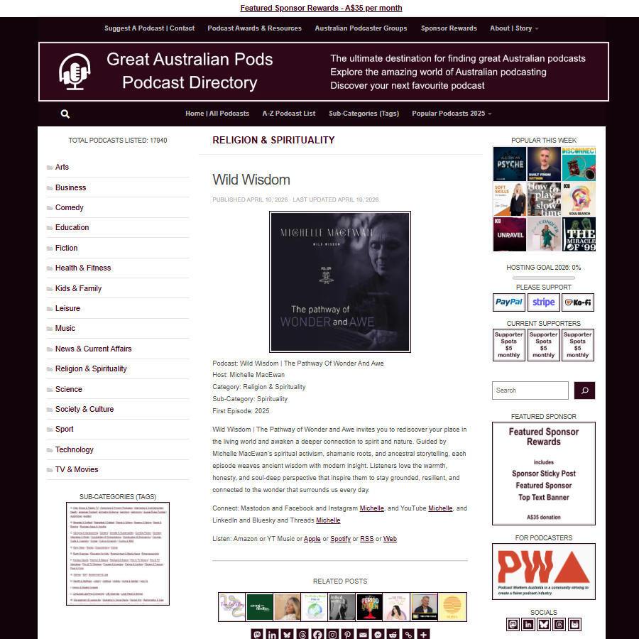 Great Australian Pods Podcast Directory: https://www.greataustralianpods.com/wild-wisdom/