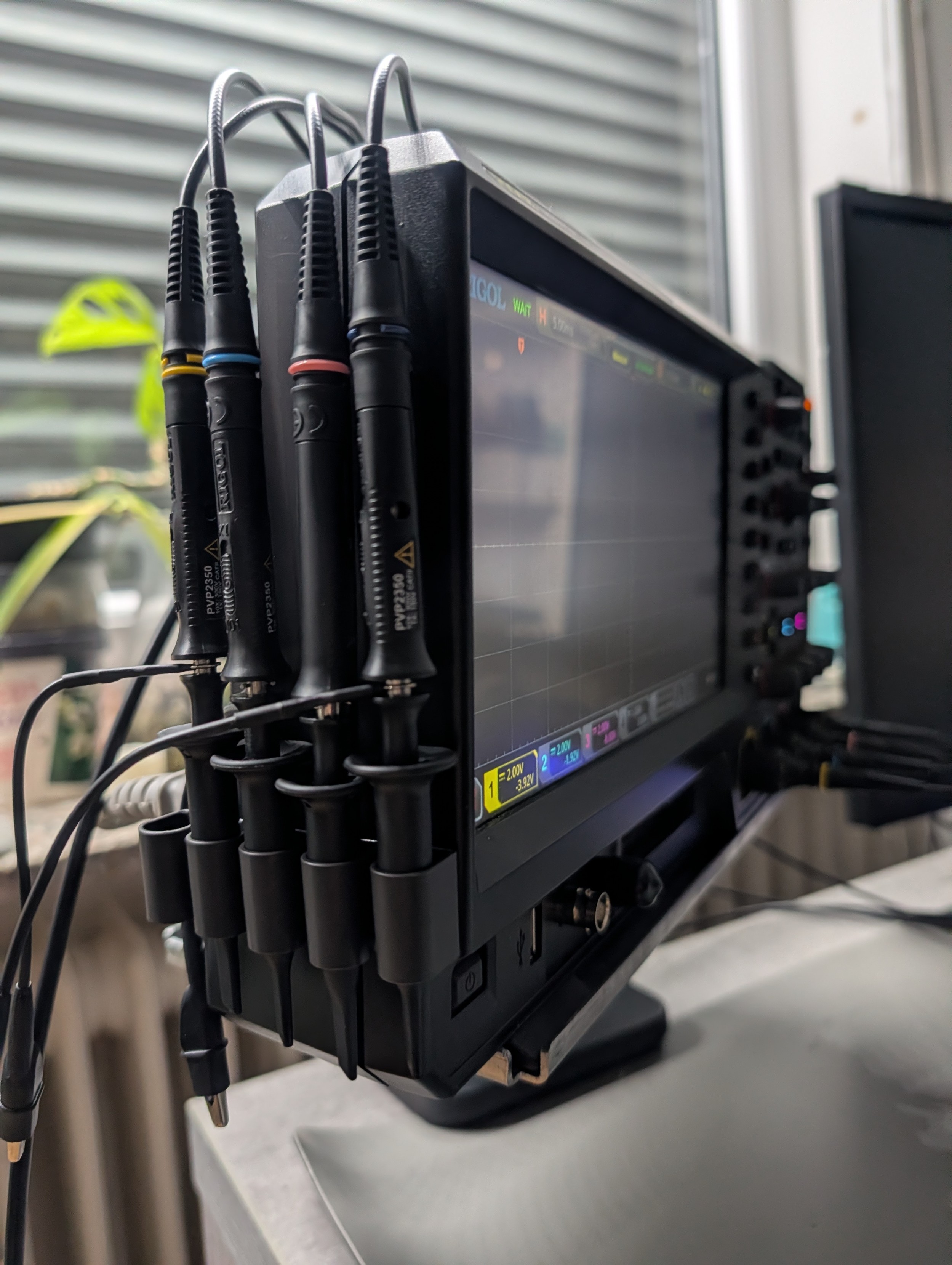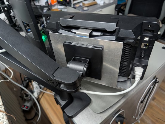 My dad made me a Vesa compatible holder for my oscilloscope and it turned out great! Just as imagined. Of course, it is a massive steel construction, we both would not trust a 3D printed construction with my dear Rigol.