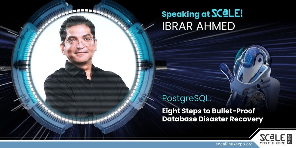 Ibrar Ahmed will speak on 'Eight Steps to Bullet-Proof Database Disaster Recovery' as part of our PostgreSQL@SCaLE track at SCaLE 23x. Full details: https://www.socallinuxexpo.org/scale/23x