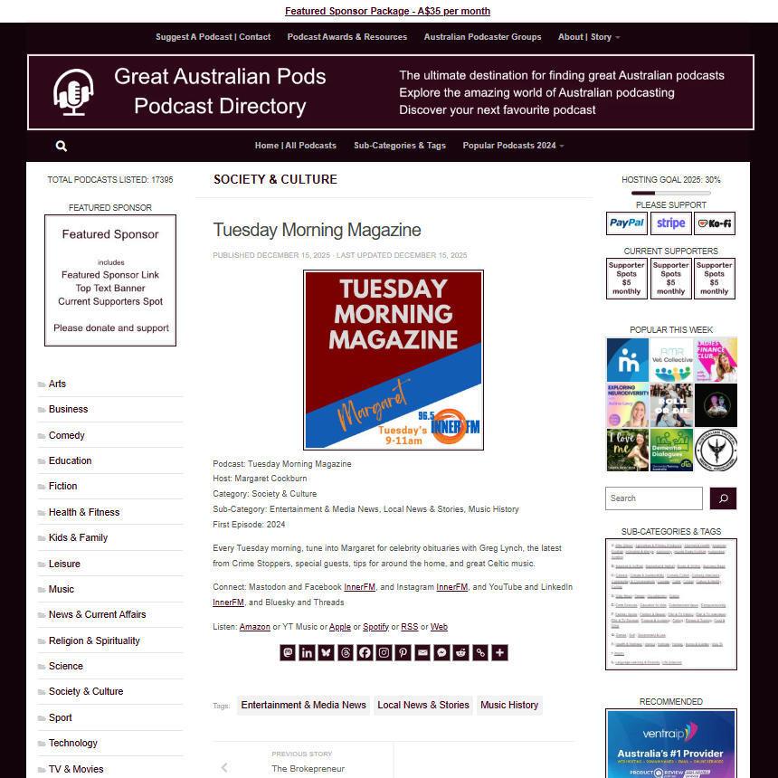 Great Australian Pods Podcast Directory: https://www.greataustralianpods.com/tuesday-morning-magazine/
