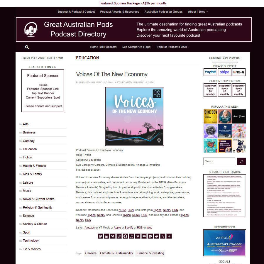 Great Australian Pods Podcast Directory: https://www.greataustralianpods.com/voices-of-the-new-economy/