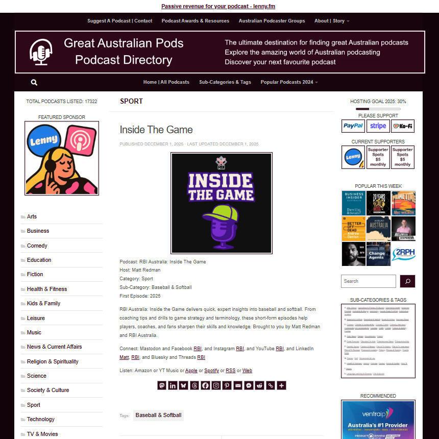 Great Australian Pods Podcast Directory: https://www.greataustralianpods.com/inside-the-game/