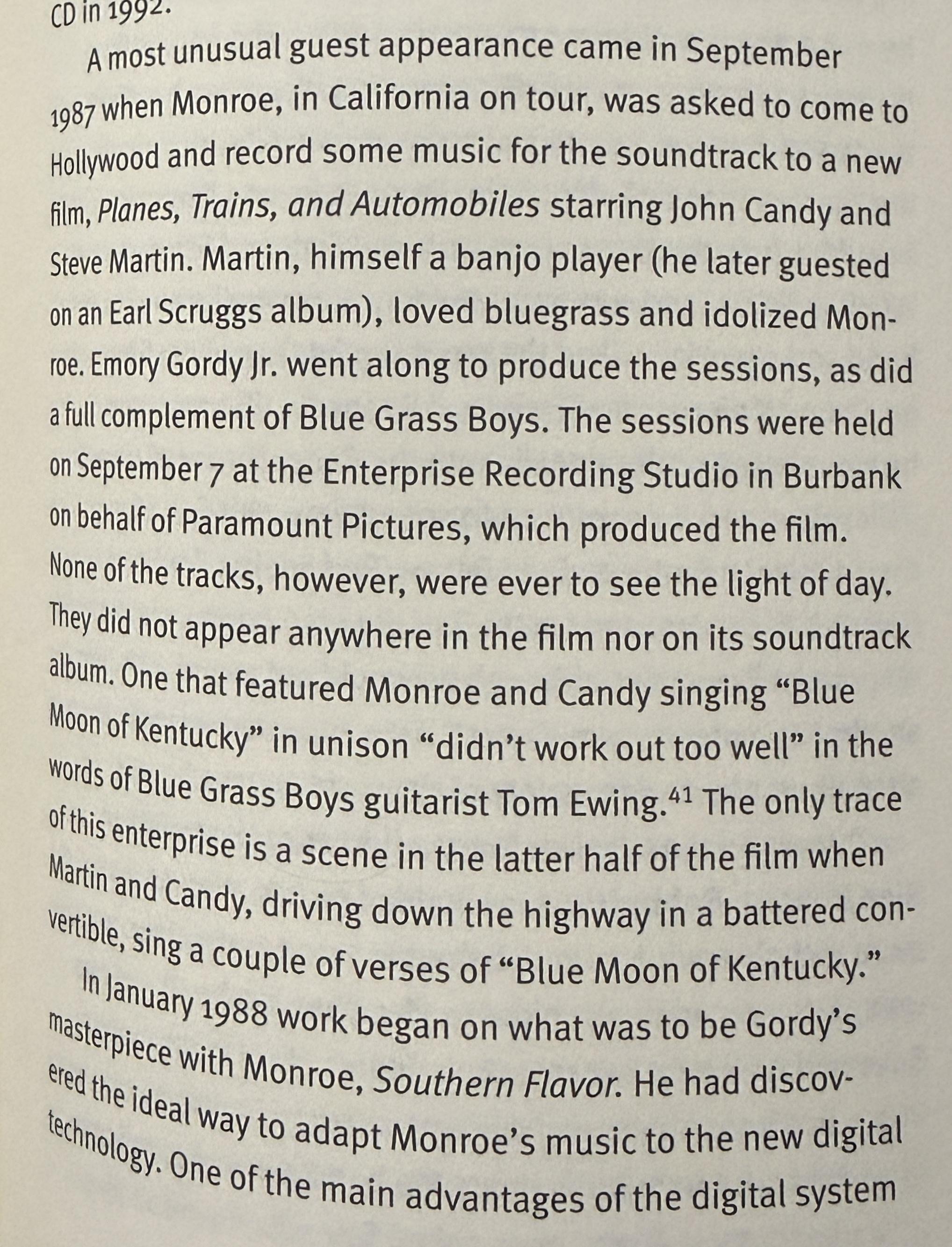 watched the overwhelmingly sweet john candy documentary & learned from looking up a photo in the end credits that he recorded duets with bill monroe for the "planes, trains, & automobiles" soundtrack. https://www.mandolincafe.net/home/…