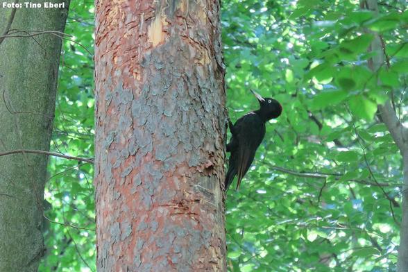 Der #Schwarzspecht beeindruckt mit seiner Größe und seinem überwiegend schwarzen Gefieder. Diese Spechte leben in Laub- und Mischwäldern Europas und Asiens, wo sie große Bruthöhlen in alte Bäume meißeln, die von vielen anderen Tieren genutzt werden. Als ich zum ersten Mal einen sah, war ich sehr überrascht und beeindruckt. 🐦🌲🔨