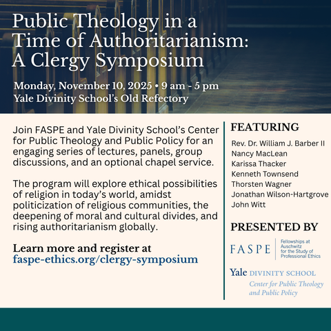 Important clergy symposium hosted by FASPE and the Center for Public Theology & Public Policy. November 10 at YDS. https://www.theologyandpolicy.yale.edu/blog/public-theology-in-a-time-of-authoritarianism-a-clergy-symposium