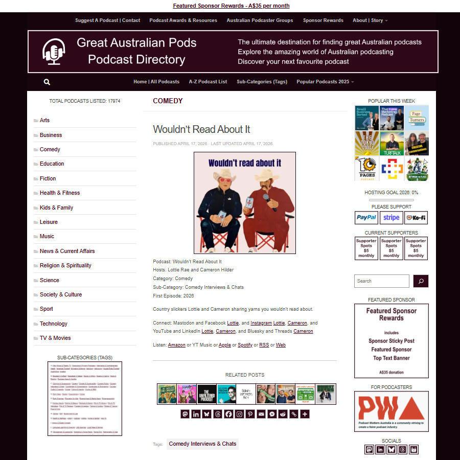 Great Australian Pods Podcast Directory: https://www.greataustralianpods.com/wouldnt-read-about-it/