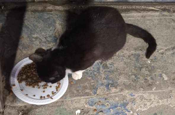 Perdeu um pouco o sentido isso de descer pra alimentar os gatos da rua, sendo que agora todos os gatos do grupo original jš desapareceram. Só sobraram alguns que aparecem aqui esporadicamente (inclusive o Niniro e a preto e branca - que vemos aqui na foto). Mas eu sei que a Escaminha tem alguns filhotinhos (que eu vi pouquíssimas vezes) e que, embora não sejam mais bebês, ainda devem depender bastante da mãe. Desci mais na esperança de encontrš-los, mas nenhum sinal deles.