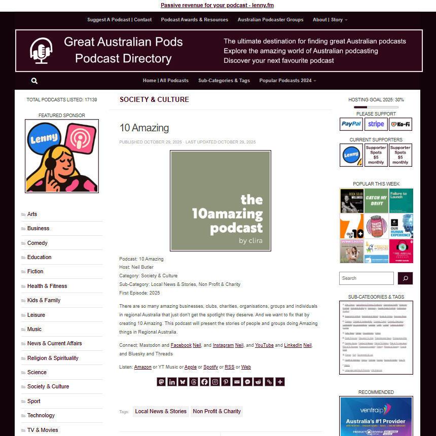 Great Australian Pods Podcast Directory: https://www.greataustralianpods.com/10-amazing/