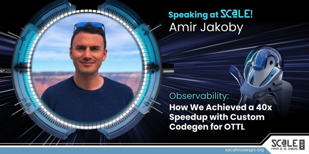 Amir Jakoby will speak on 'How We Achieved a 40x Speedup with Custom Codegen for OTTL' as part of our Observability track at SCaLE 23x. Full details: https://www.socallinuxexpo.org/scale/23x