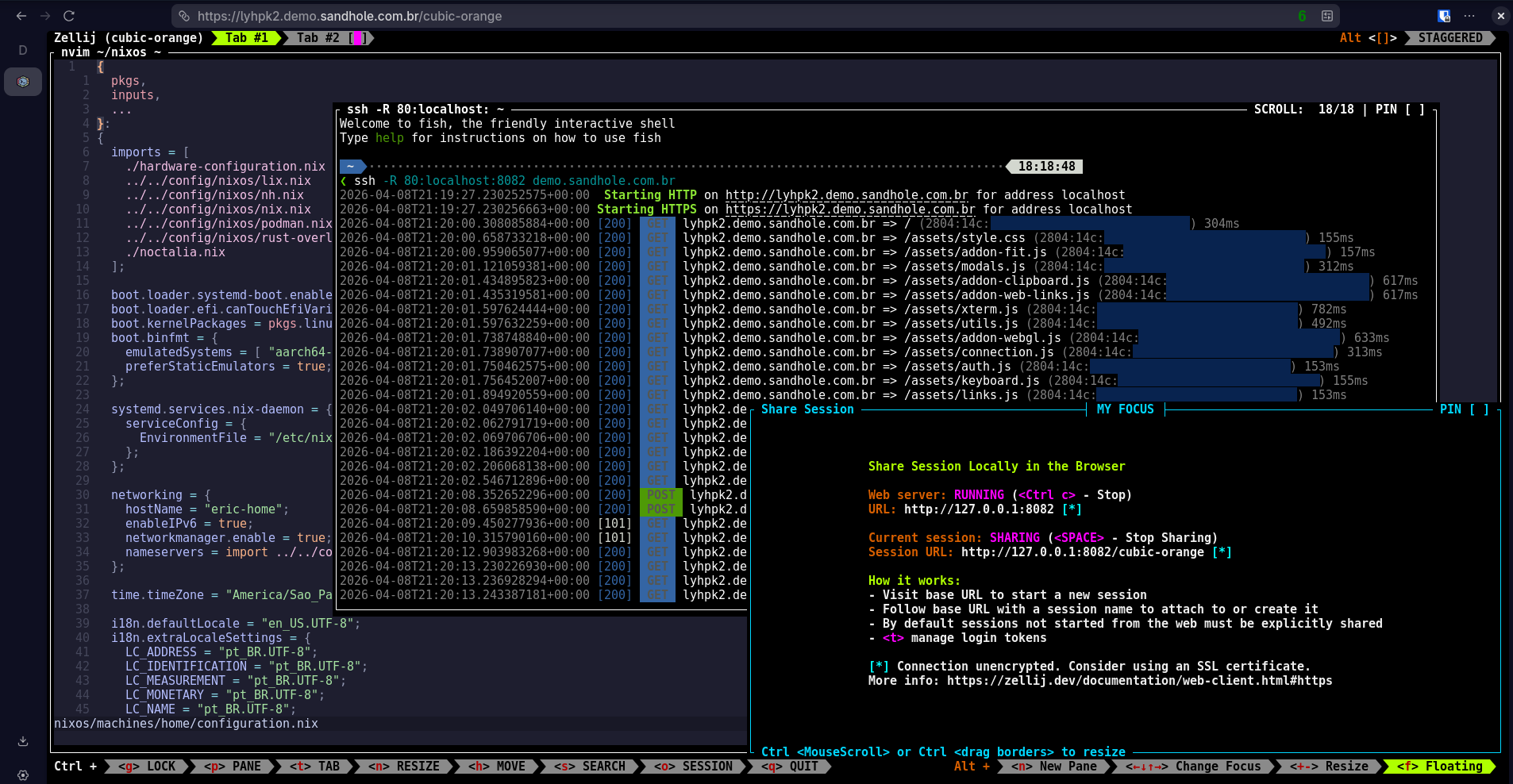 You don't have to leave your Zellij session, or install anything, to share it across CGNAT! All you need to do is run: