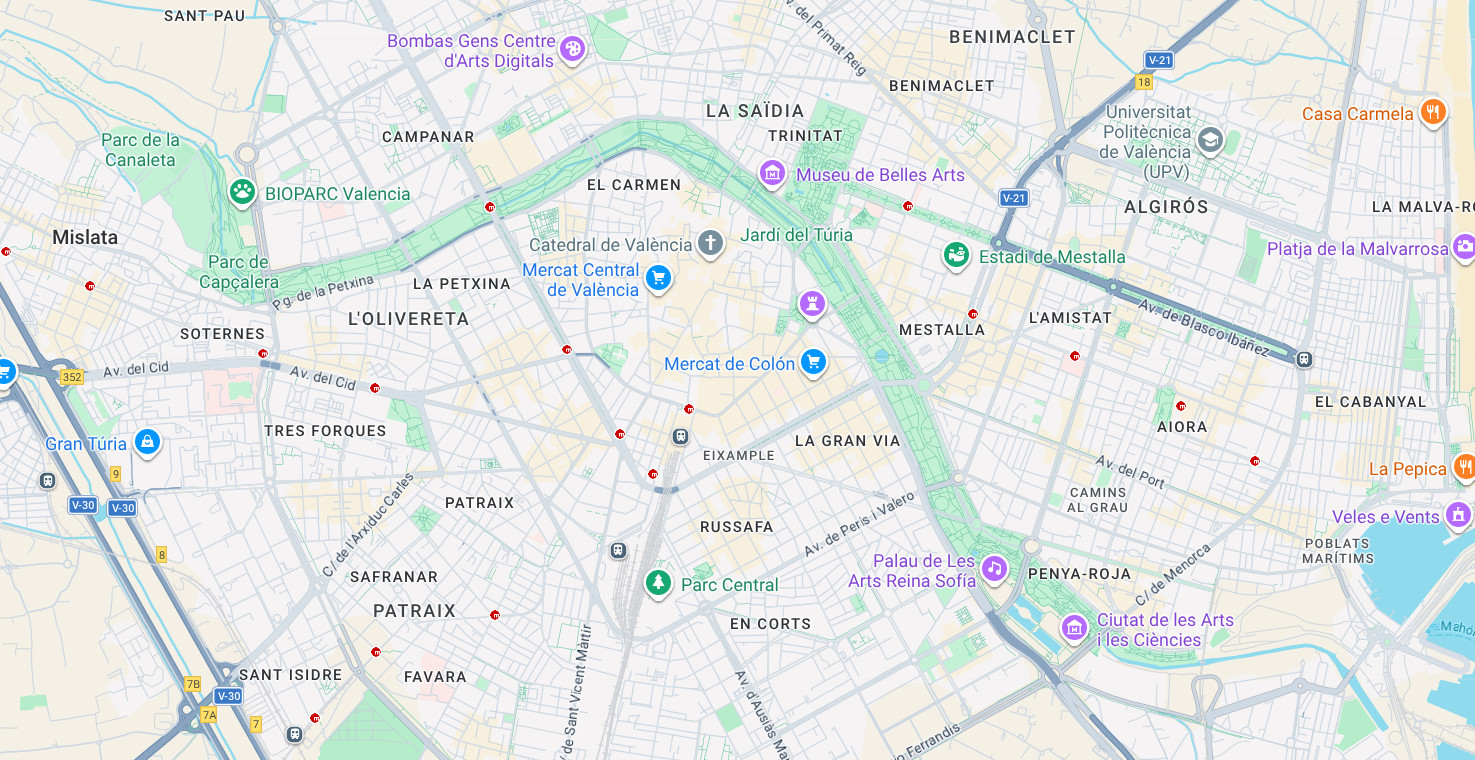 Today we are in Valencia. They have this amazing park, the Jardí del Túria, built on the old riverbed of a diverted river. A 200m wide park running right through the town some 10km, a green lifeline defining the city. Also some amazing contemporary architecture.
