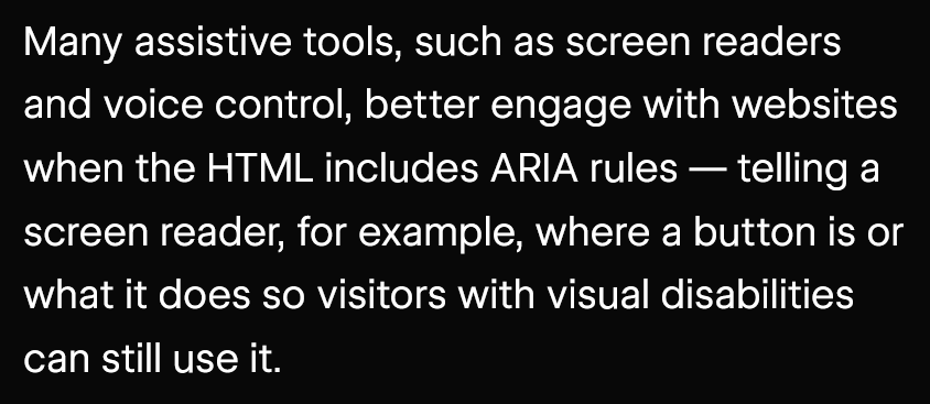 I understand you may not have anyone on staff to review this LLM-generated ARIA explainer, but you’ve mostly just convinced me your product is a lawsuit-in-waiting.