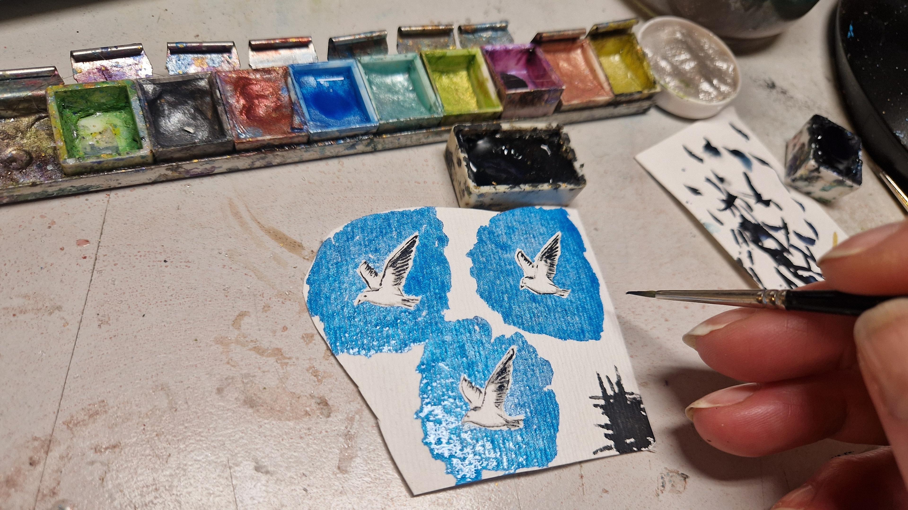 #birds #miniaturepainting #watercolor #fediart #mastoart #creativeToots