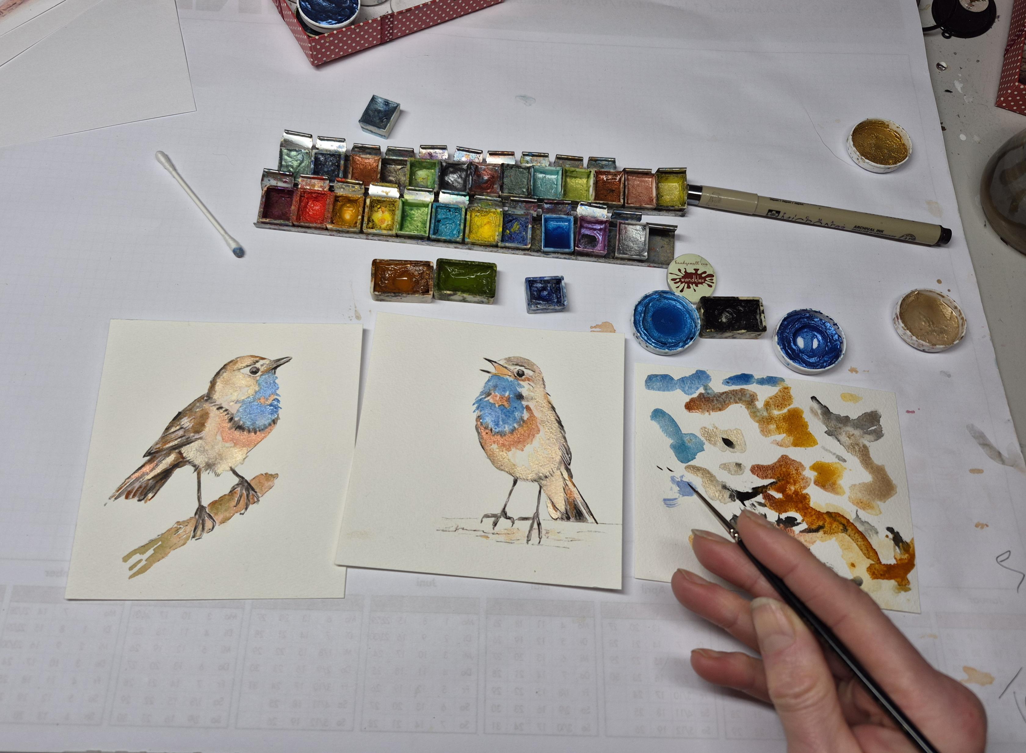 Wollte den Blaukehlchen am Deich erzählen, dass sie aktuell bei mir zum Malen dran sind, aber sie haben ihren Knick noch gar nicht bezogen. Hoffentlich werden sie auch dieses Jahr wieder zu finden sein.