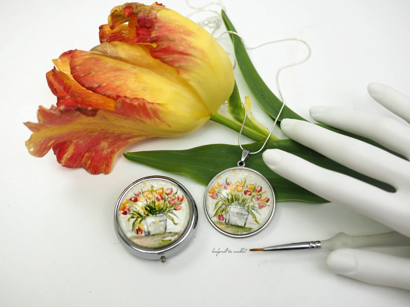Zu finden sind diese handgemalten #wandklexschmuck Regenbögen to go auf https://www.wandklex.art/product/regenbogengeschmeide-7-handgemalte-galaxien-gemeinsam-gefasst-in-edelstahl-halsschmuck-461972.