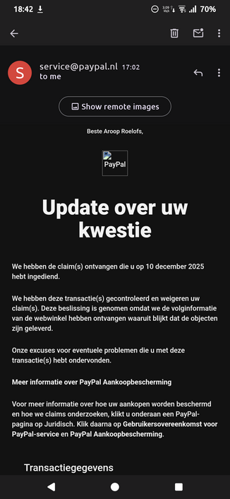 >PayPal: "according to information provided by seller it arrived so we're rejecting the claim"