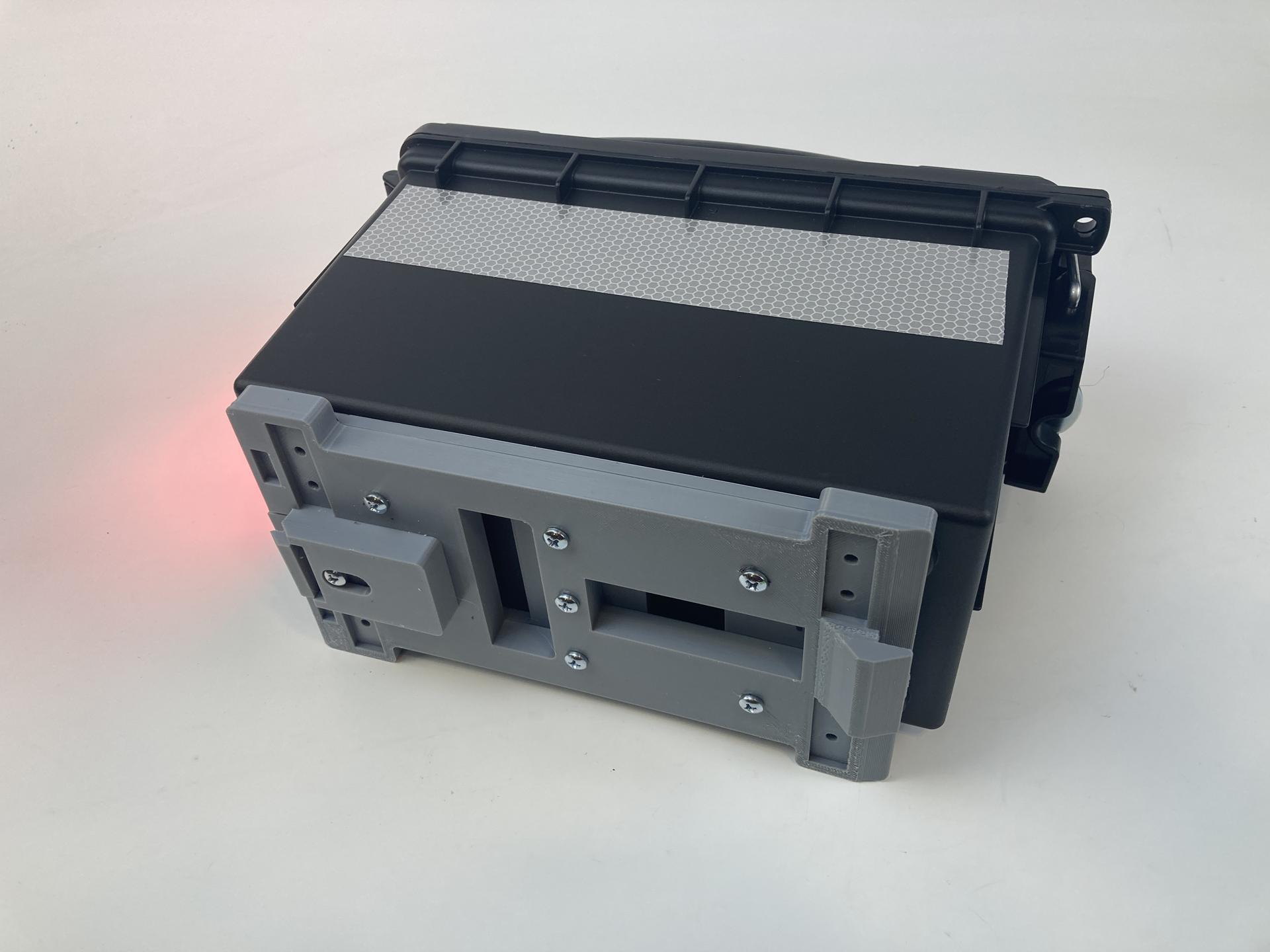 I bungee corded it into place and it's good now... but the box is busted so I'll have to come up with another solution.