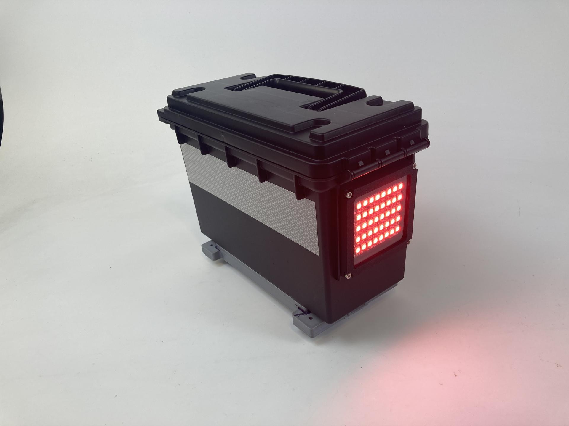 The box with a NeoPixel matrix on the back and a USB battery inside (and a microcontroller) works great!