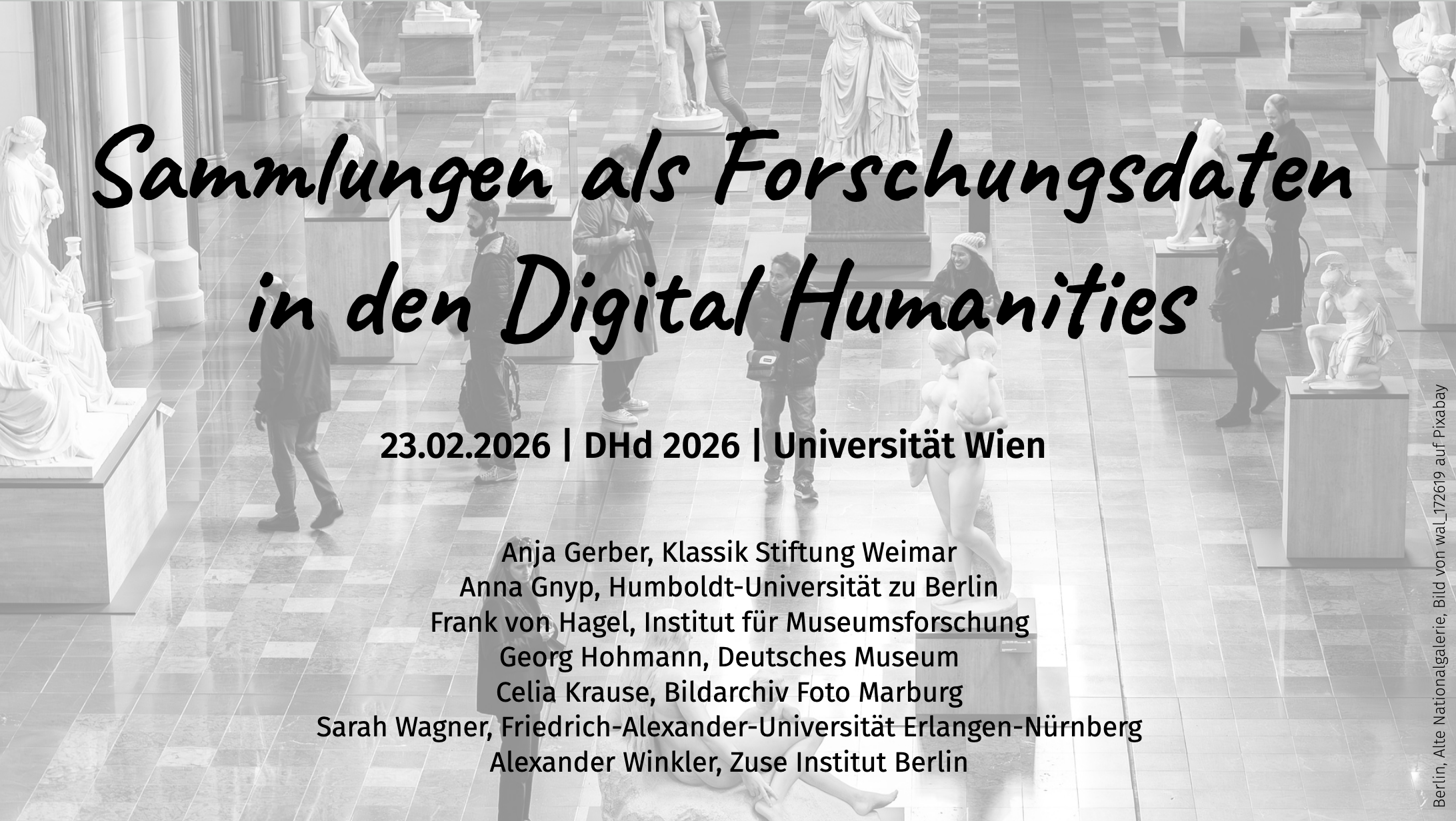 Die #DHd AG Sammlungen als Daten #agcollections hält heute einen Workshop auf der #DHd2026 in Wien zum Thema "Sammlungsdaten als Forschungsdaten in den Digital Humanities". Mehr Infos …