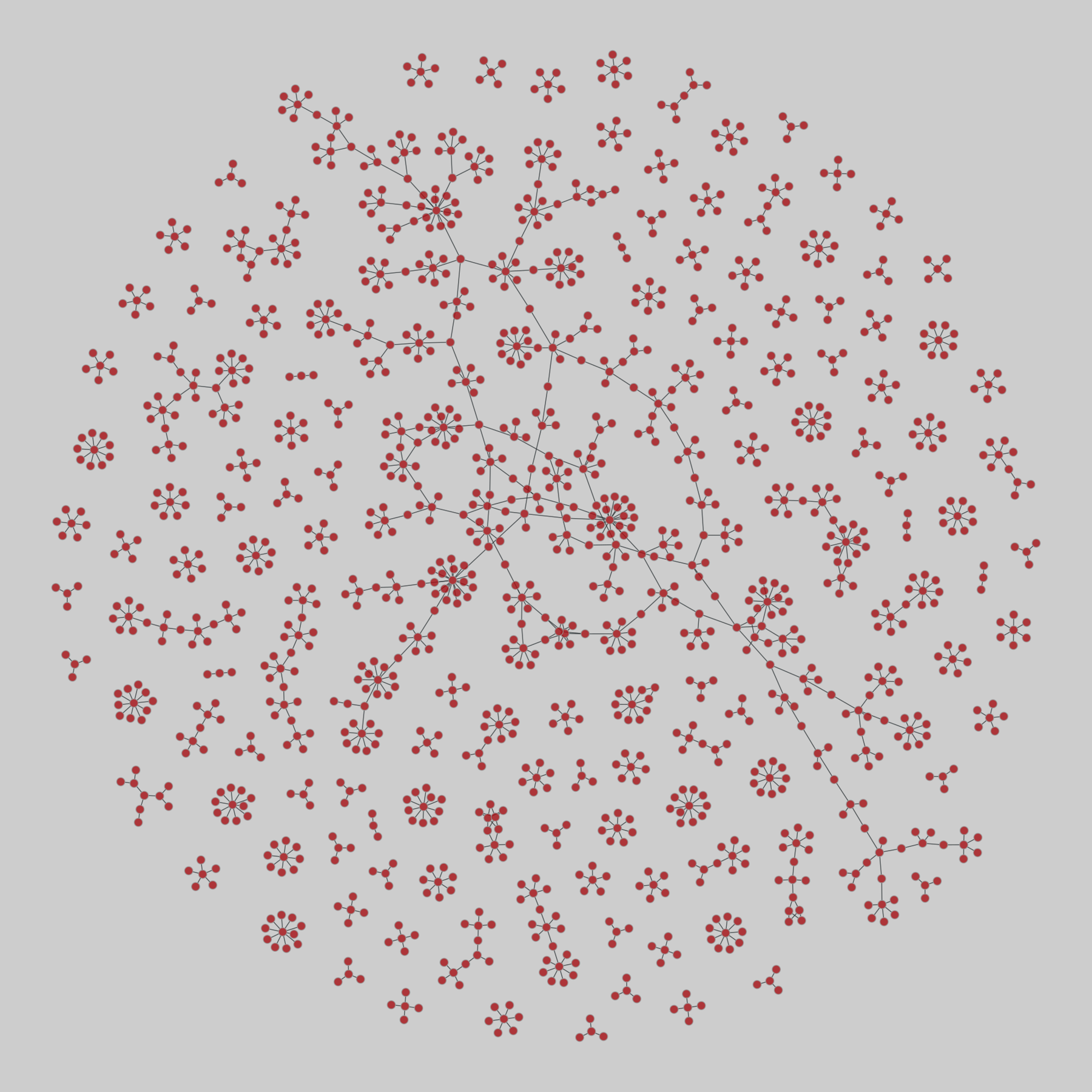 A sequence of 9 snapshots of the Gnutella peer-to-peer file sharing network from 5-31 August 2002. Nodes are hosts in the Gnutella network topology and edges are connections between them.