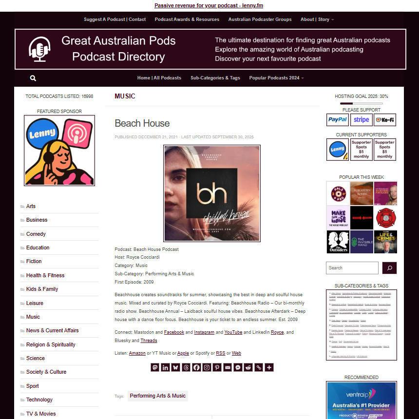 Great Australian Pods Podcast Directory: https://www.greataustralianpods.com/beach-house-podcast/