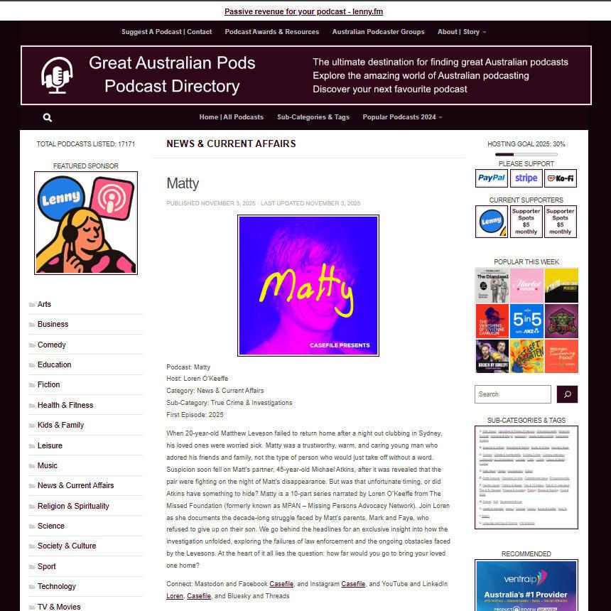 Great Australian Pods Podcast Directory: https://www.greataustralianpods.com/matty/