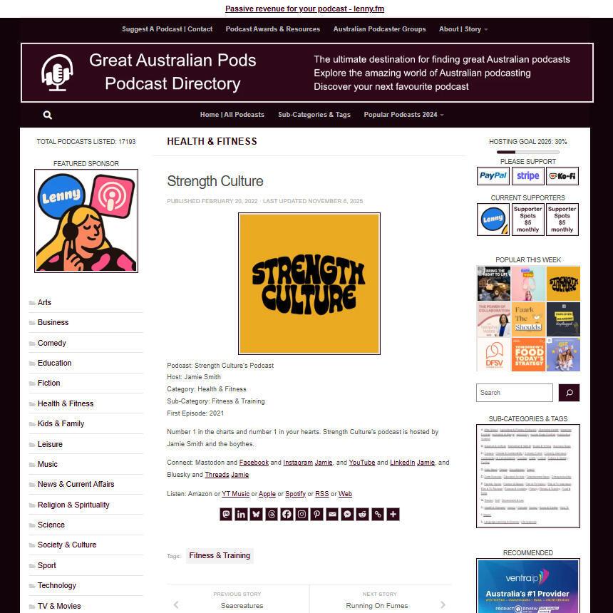 Great Australian Pods Podcast Directory: https://www.greataustralianpods.com/melbourne-strength-culture/
