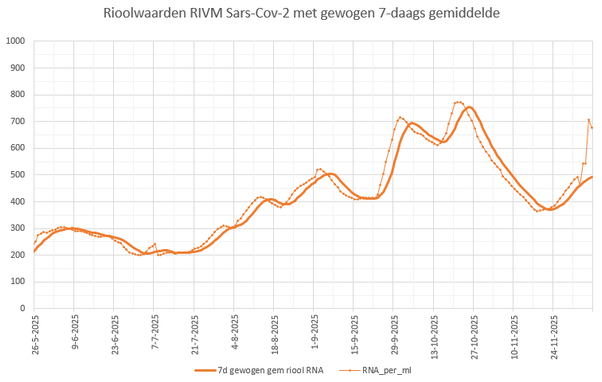 RIVM update rioolwaarden en percentage positief Sars-Cov-2.