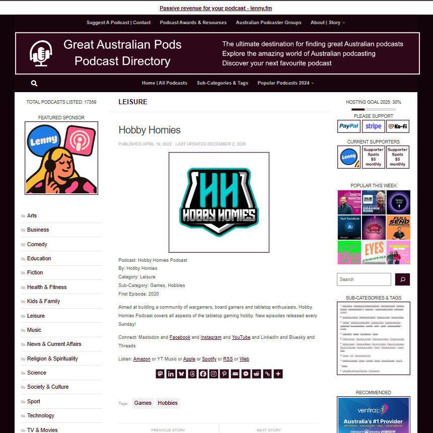 Great Australian Pods Podcast Directory: https://www.greataustralianpods.com/hobby-homies/