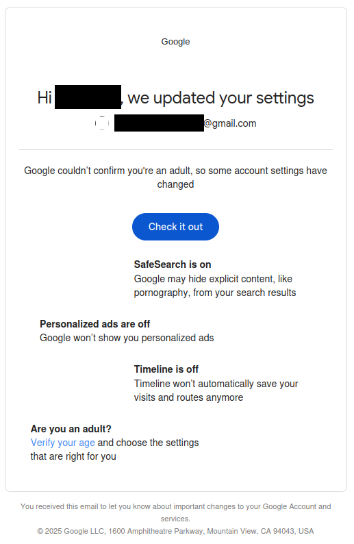 Even though I explicitly told Google I am an adult.