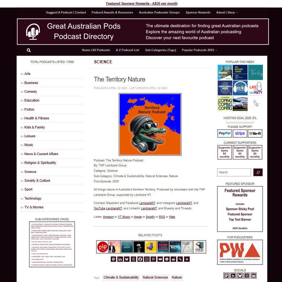 Great Australian Pods Podcast Directory: https://www.greataustralianpods.com/the-territory-nature/…