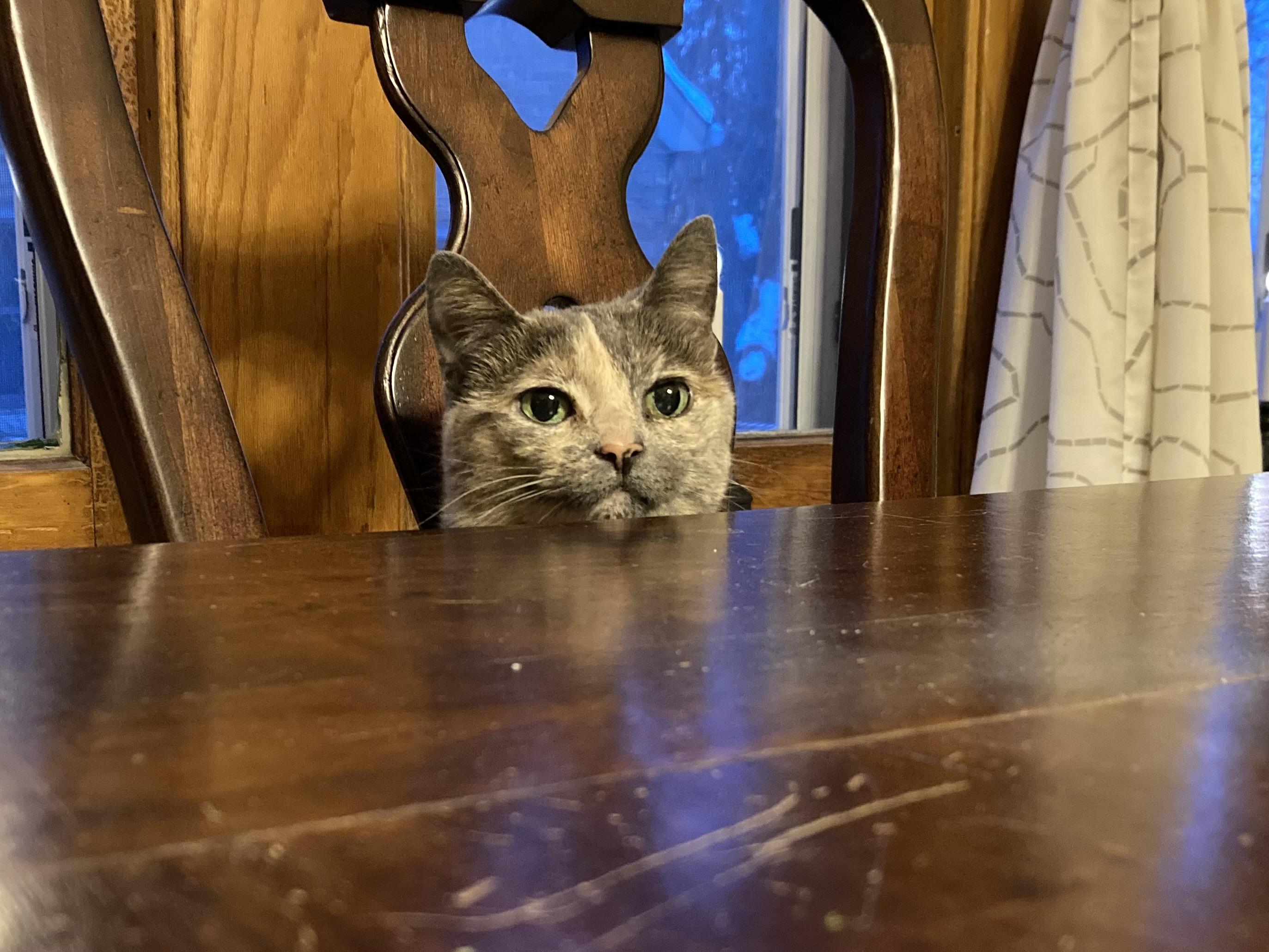 Fiona is enjoying this evening’s offering to Bast, a beef feast. She insists that the cow is the natural prey of the domestic #cat and that who should I believe, biologists or an actual cat.