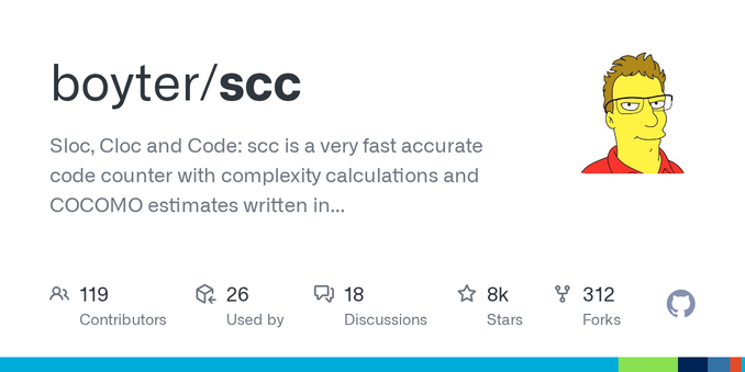 Finally have been trying out https://github.com/boyter/scc for counting (unique) lines of code, comments, DRYness and complexity and getting a better and more aggregated overview of the scale of my ht…