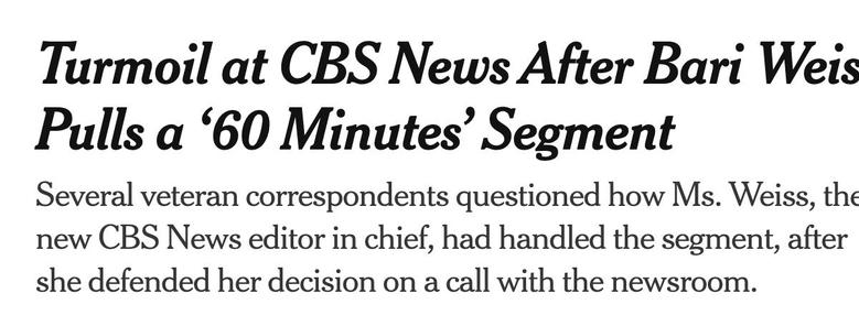 Bari Weiss' 60 Minutes decision may have been a way to both signal that she's serious about shifting CBS' sensibility to the right and "improve" a story (Henry Blodget/Regenerator)