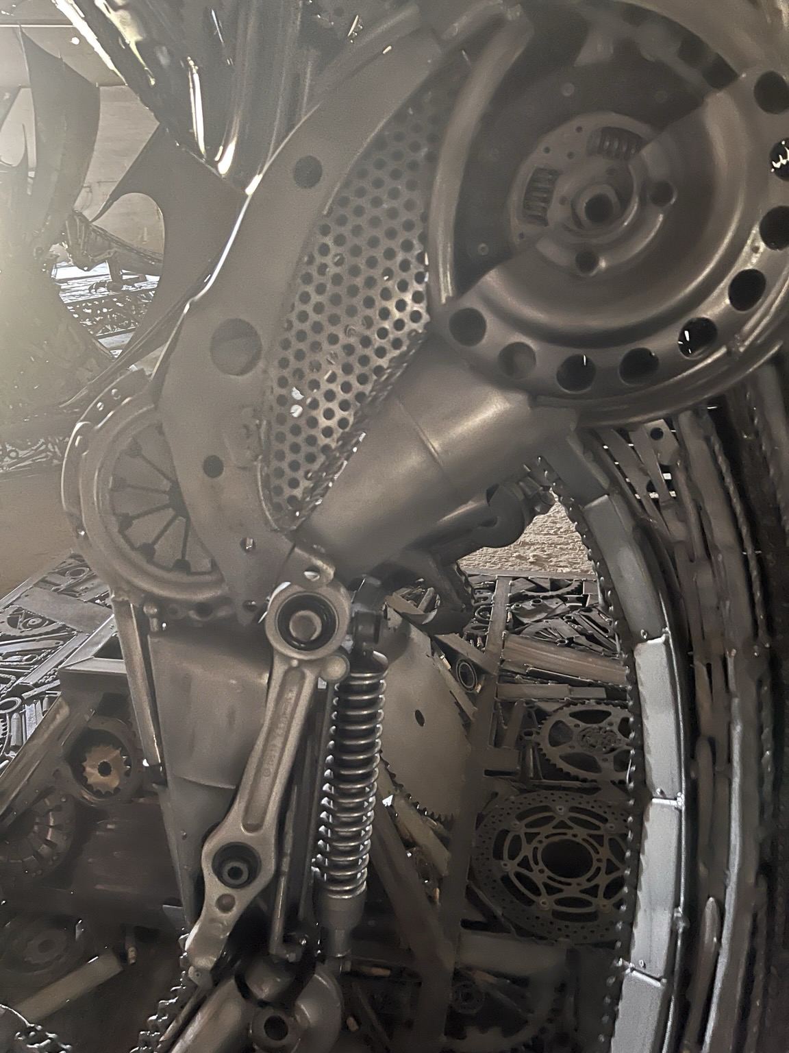 This kind of literalism isn’t particularly my taste - BUT got to hand it to this guy for doing some seriously dedicated work using just scrap metal. 🤌 His name is Zoltšn Rónaszéki and he lives and works in a tiny village in Hungary. I couldn’t photograph the most impressive piece as he hadn’t unveiled it yet.