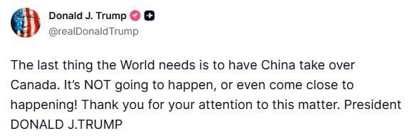 I honestly take this to mean he would rather the USA take over Canada rather than China….