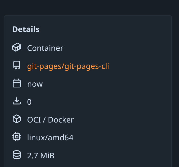now _this_ is a good docker container (it has two files inside) https://codeberg.org/git-pages/-/packages/container/git-pages-cli/latest